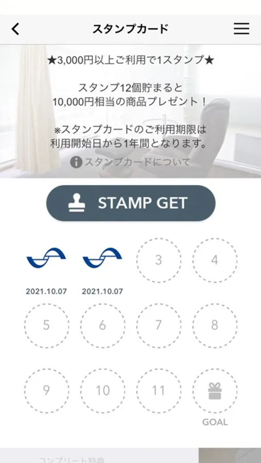 アプリ内にスタンプが貯められます。