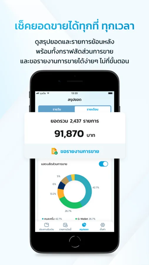 - แสดงยอดขาย รายการวันนี้, สรุปยอดย้อนหลังเป็นรายวัน/รายเดือน