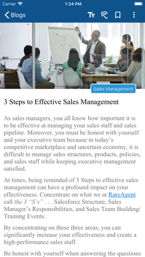 When you open a blog post, SalesPOP! app gives the best way to display that blog post content in a "Reading View" a distraction-free, easy-to-read format that is designed to deliver the best reading and viewing experience, with all unnecessary information left out.