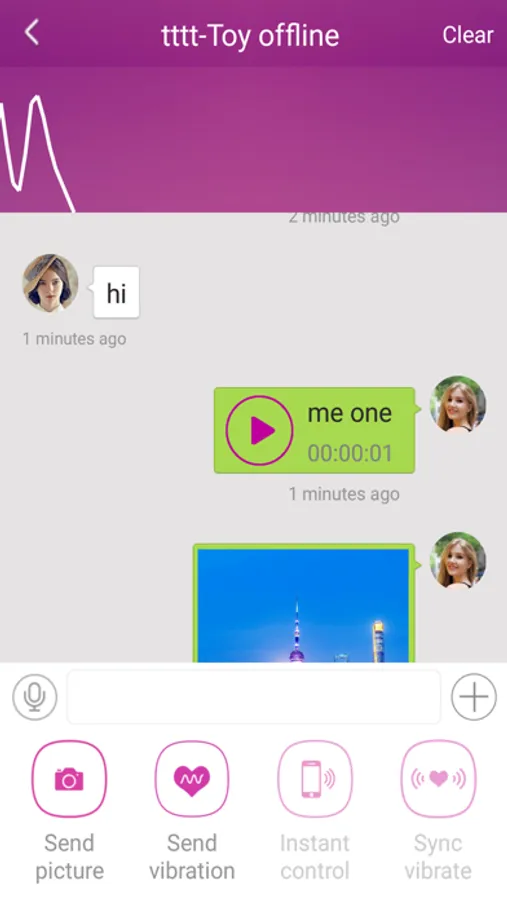 6. Remote Mode: You can add friends (by user name to add) for chat (include text, pictures, voice, vibration curve to share, request control of the other device, request control of both devices vibration at the same time, etc).