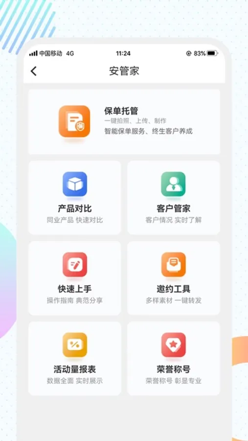 汇e保是中汇人寿面向服务人员研发的,为客户提供保单电子体检,实现客户保险数字化,智能化,科学计算客户的保障需求及缺口,并进行智能推介和线上投保的一站式服务项目,致力于为客户创造价值,实现真正的“按需推介”的保险销售 。未来将客户管理、清单管理、活动量管理,以及报表体系、客户服务、线上培训等功能集成为一体,全力打造中汇人寿保险服务平台。