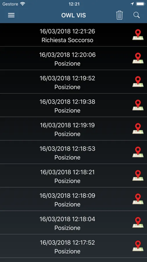 -storico eventi e posizioni con memorizzazione degli eventi ed eventuali posizioni gps