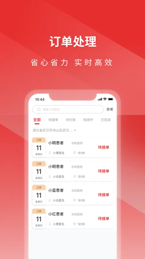 送检订单报告实时查询、在线管理医师送检订单,医师互动沟通零距离,还可在线查看前沿医学咨询及文献报告,精细化便捷跟进订单流程,快速处理,管理销售个人订单数据。