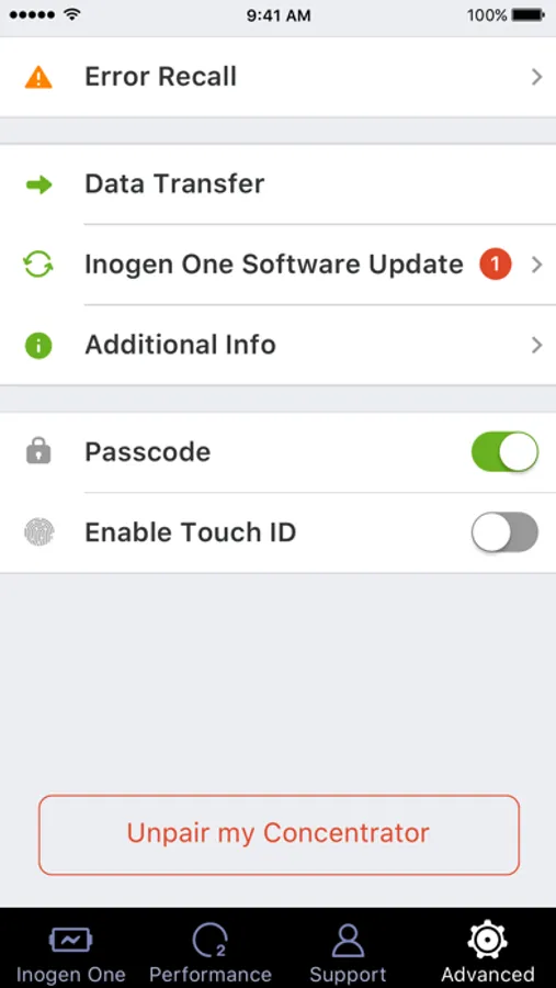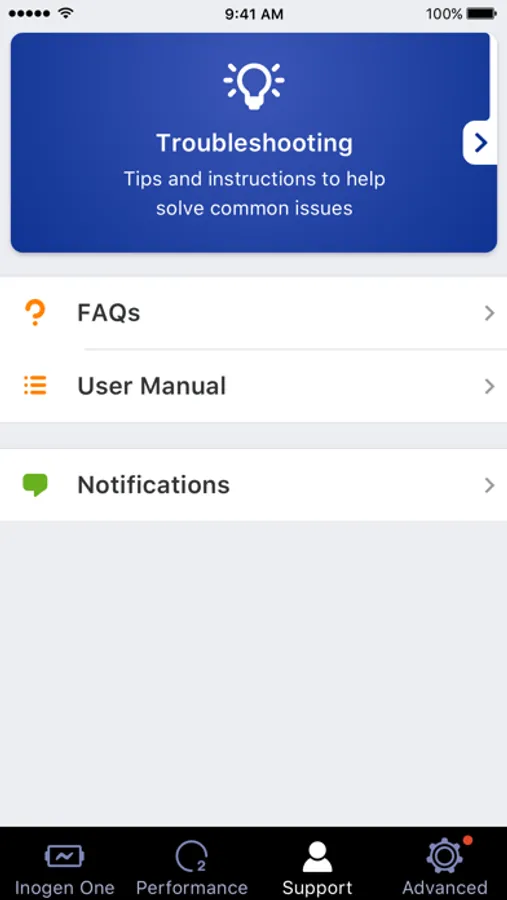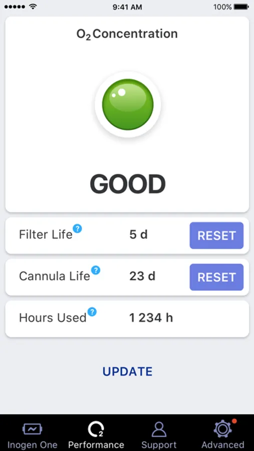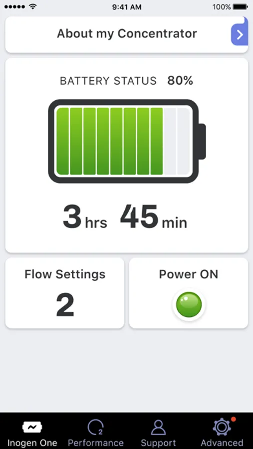 Your Inogen One connects directly to your mobile device delivering real-time stats, such as battery life and current settings. All the information you need to stay mobile and active is now in the palm of your hand. With the Inogen One Connect app you also receive important updates and travel tips for your Inogen One. App users will have direct access to helpful videos and information 24/7. Oxygen. Anytime. Anywhere.®