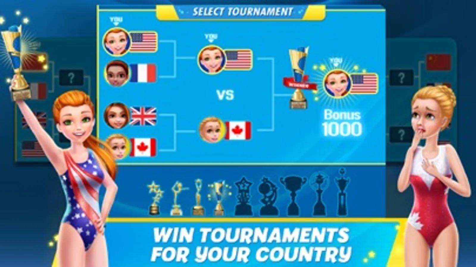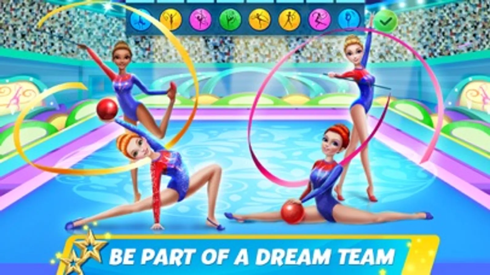 > Compete in an awesome team of stellar rhythmic Olympic gymnasts!