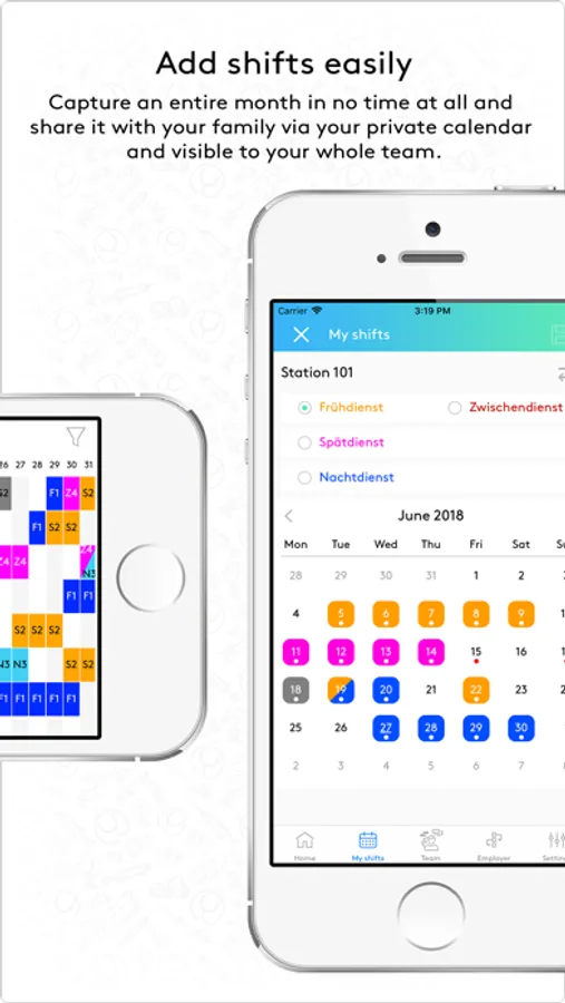 At least two and ultimately any number of people form a team. If you, as a team, have learned to appreciate the benefits of the app after some time, you can increase it even further by involving the employer. The data sovereignty remains with the team, which determines which interactions with the employer are unlocked. The private mobile number is not required and can remain secret.