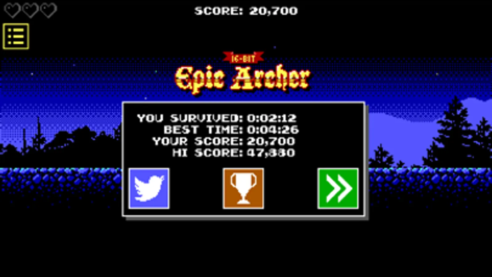 16-Bit Epic Archer is a fast-paced, chaotic, retro-style game that combines both endless runner and shoot 'em up game mechanics in a medieval (slightly tongue in cheek) fantasy setting. Grab your bow, and run endlessly while firing arrows and annihilating almost anything that stands in your path!