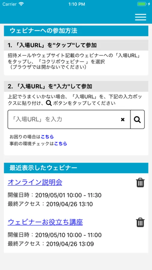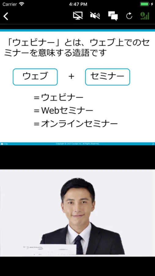 ・本アプリケーションは参加専用のため、配信機能は搭載しておりません。ウェビナーの主催および配信には別途ウェブサービス「コクリポウェビナー」のご契約が必要です。