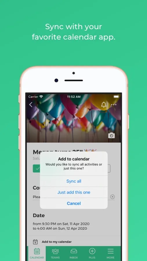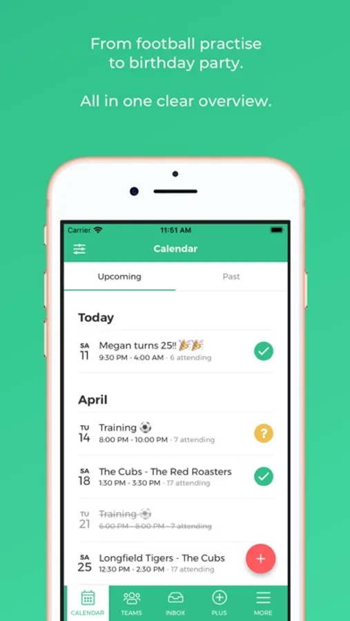 - Sync with your own calendar so that you will never have to miss another training or match
