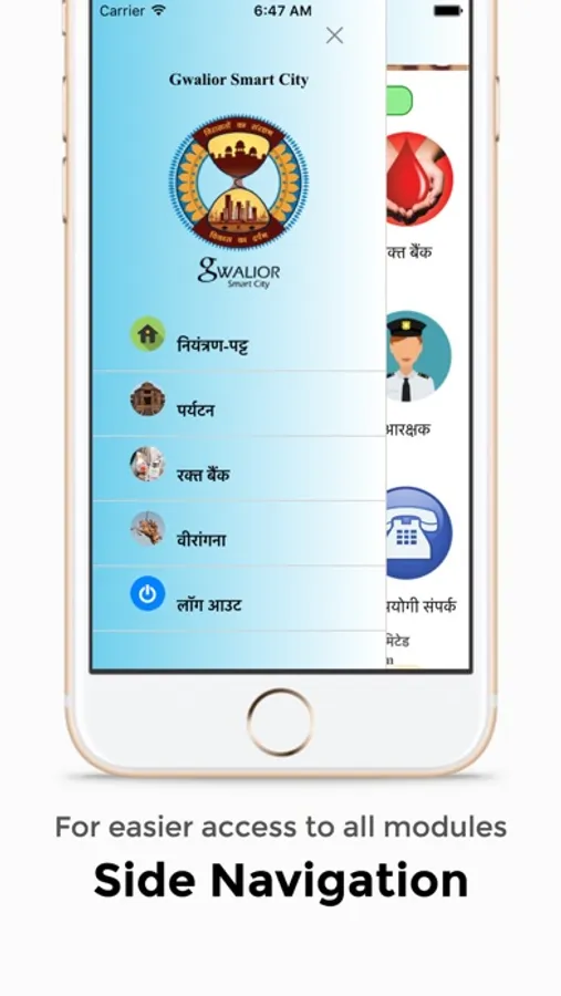 The app has innovative features all combined under one platform One City One App like Veerangana Module – Use of location based services to track any person seeking help in times of any kinds of distress. Paryatan Module– All the possible places have been listed in the app categorically which will help the user in getting accurate search results and updated details about the place backed with the location details about the place which can help in navigating there easily through Google maps. The app will help in providing review about places in Gwalior which will help anyone travelling to/near that place in future. In built review and rating system will help in creating an ecosystem of ratings within the app itself on the basis of user’s choices and reviews. This ecosystem will build a sense of competition. App will connect to payment gateways as well as ticketing systems which will enable a one stop solution for booking cinema tickets to hotel rooms through this one app. Blood Bank Module – We will also be maintaining a centralized database for the consolidated data of donors so that during times of distress people get the accurate data. The data will be updated daily from reliable sources in Gwalior by which the needy will be served within available time. Citizen Centric Services – Basic daily utility needs from cab services to hotels to LPG gas booking made easy at your finger tips.