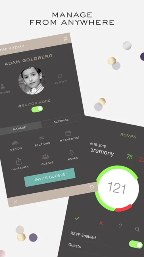 TRULY MODERN: Stay on top of it all wherever you go. Collect RSVPs and update details directly from your app (or anywhere you wish).