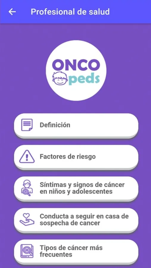 ONCOpeds es un aplicativo móvil cuyo objetivo es promover el diagnóstico temprano de cáncer en niños y adolescentes