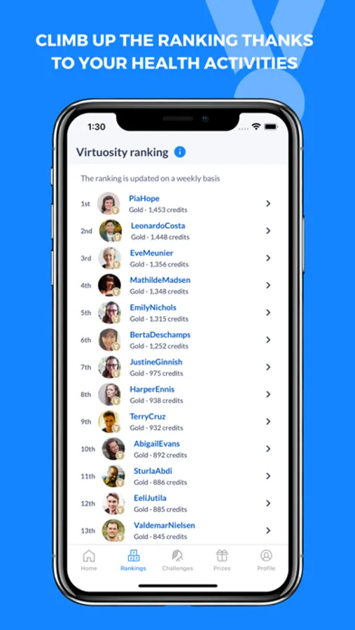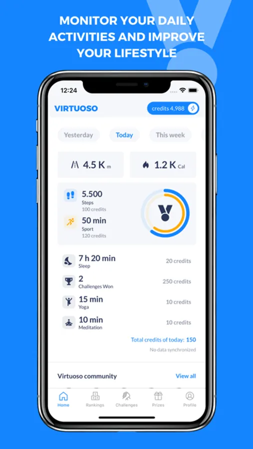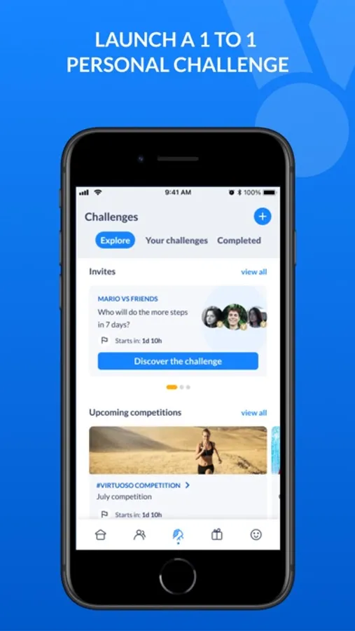 Virtuoso incentivizes and rewards your lifestyle thanks to your everyday activities recorded by the Health app. Walk, play sports, meditate, practice yoga and sleep well to receive credits that you can use inside the app to redeem free products, discounts and vouchers. You can challenge your friends in single or group challenges and you can also participate in your company’s challenge.
