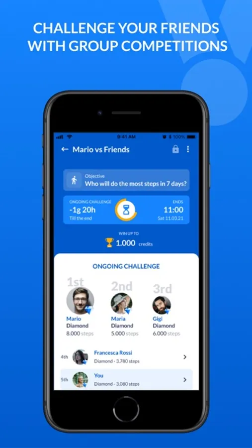 We constantly motivate and encourage you to maintain an active lifestyle with rewards, that you will be able to redeem thanks to the credits you gain everyday, the competitions and the rankings, the special content inside the app and all our best practices. We will help you follow a healthy journey with us.