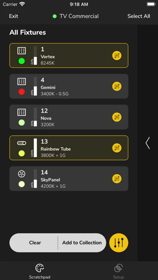 • Drag and drop collections to organize and quickly access multiple lights at once