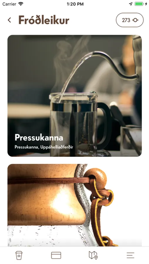 Safnaðu punktum með Te & Kaffi appinu! Appið virkar eins og vildarkortið þitt og þú getur safnað punktum við hver kaup á kaffihúsunum okkar.