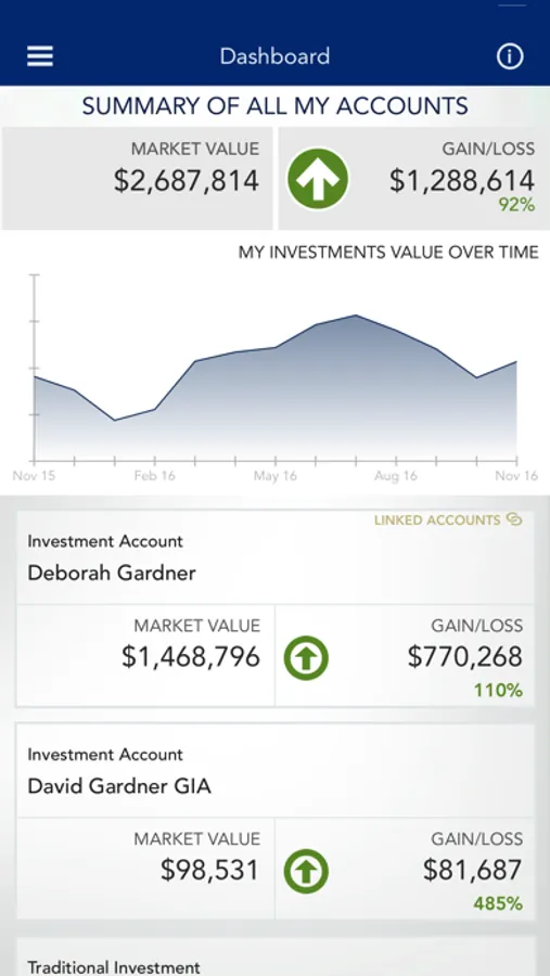 Access your accounts in the way that is most convenient to you. The Washington Trust Wealth Management TotalWealth mobile app gives clients access to their wealth management account information, including real-time account information, the ability to view balances, holdings, historical transactions, and performance, and to sort and filter by account, asset class, and time period.