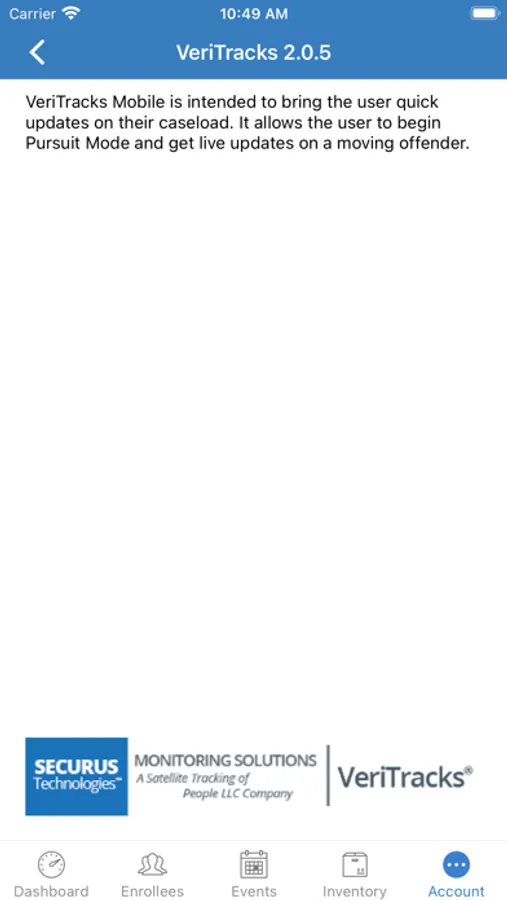 VeriTracks iOS is Satellite Tracking of People LLC (STOP)’s lighter and mobile platform for VeriTracks. VeriTracks iOS introduces features and functionality best utilized as an app on mobile smartphone devices. This functionality provides utility from a mobile, “on the go” perspective such as offender tracking, pursuit mode and quick enrollment. Stay informed and on top of your caseloads anywhere you are with VeriTracks iOS.
