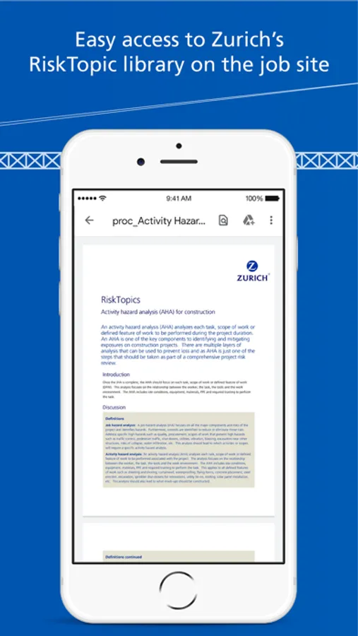 The Zurich Construction Solutions app for iPhone and iPad helps contractors drive a culture of quality and safety across job sites through communication and insights.