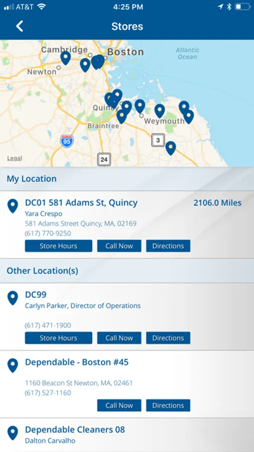 4) Quickly contact Dependable Cleaners by phone or email and access their website all directly from your device.