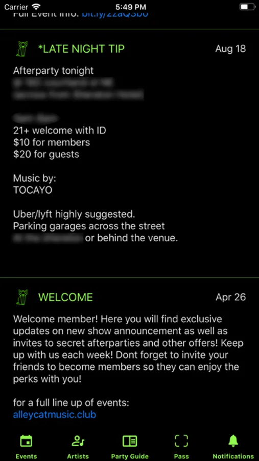 * Get info to exclusive after-parties