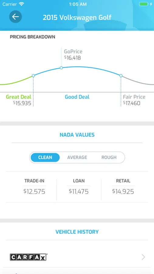 • Vehicle History - Free CARFAX and AutoCheck integration*