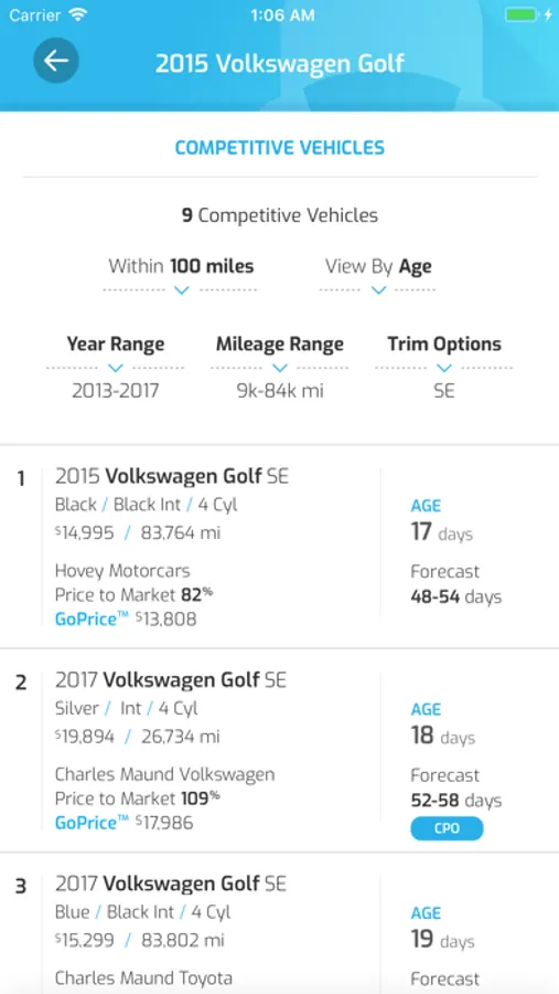• GoFeatures™ - See if each car has features to make it fly off the lot