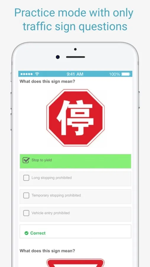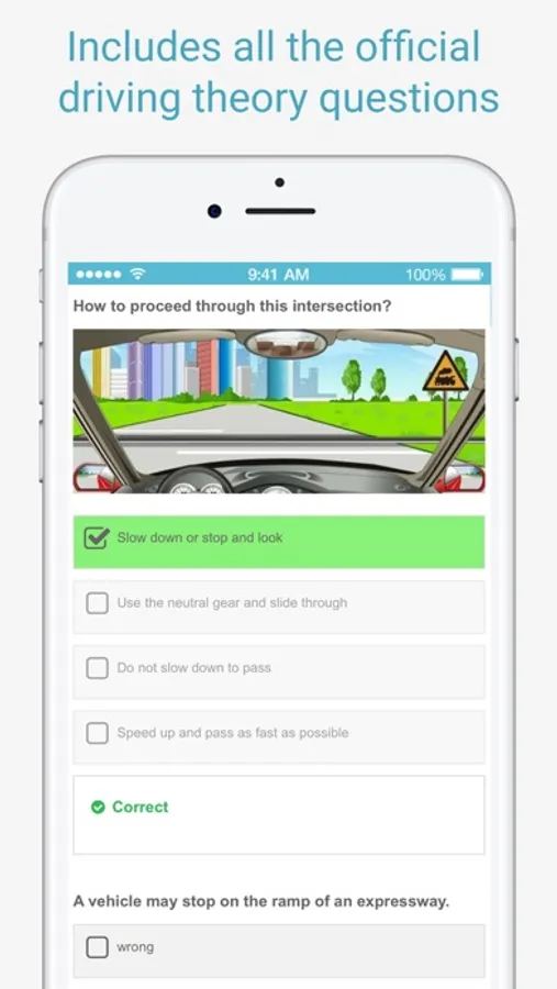 China Driving Theory Test app is an excellent tool for self-study and exam preparation. The app is fully up to date and includes the official English driving theory questions and answers. NO registration required, NO in-app purchases and NO ads.