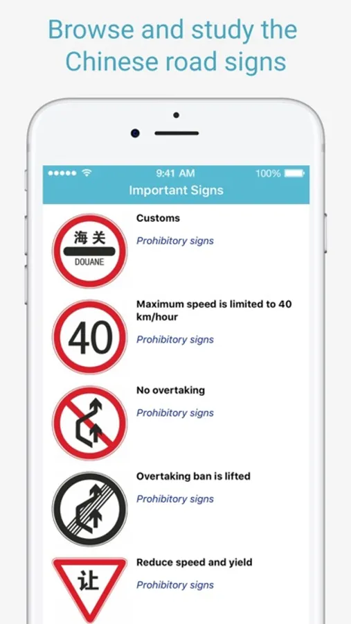 • Browse and study the most important Chinese traffic signs