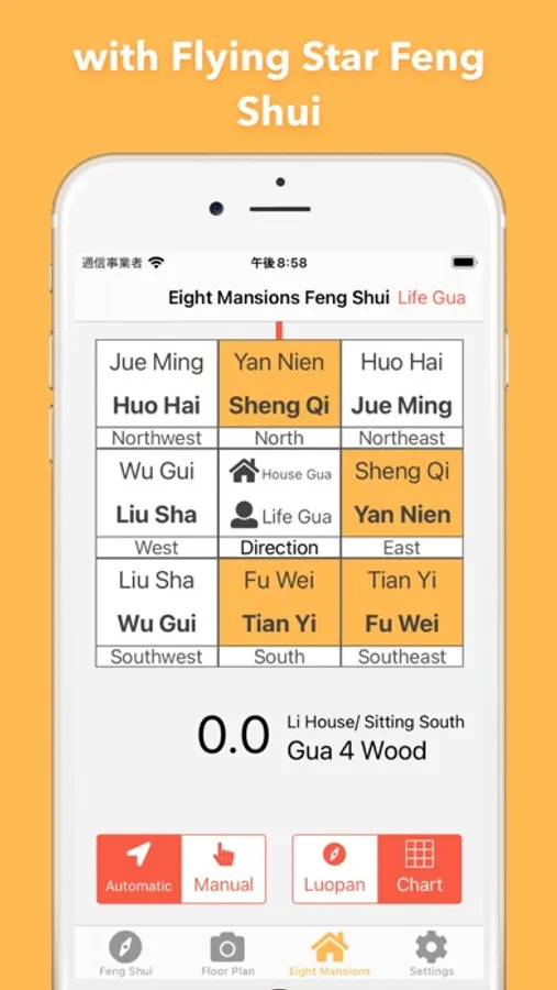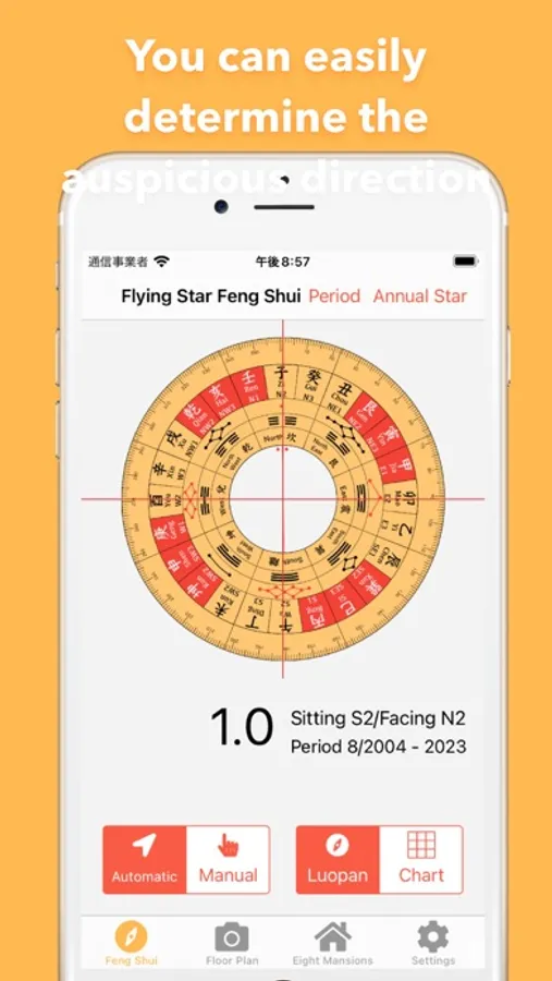 However, this Flying Star Feng Shui app automatically generates the Flying Star chart by simply measuring the orientation.