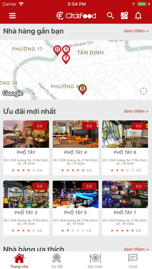 - Tham gia các chương trình khuyến mãi, cập nhật những món mới và những món đặc biệt của từng nhà hàng ưa thích.