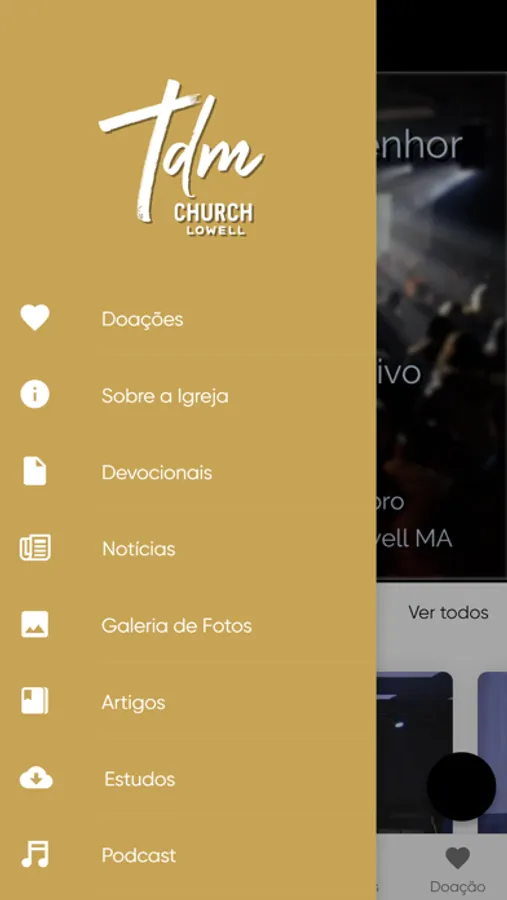 Aplicativo Oficial da TDM Church Lowell conta com as seguintes funcionalidades:
