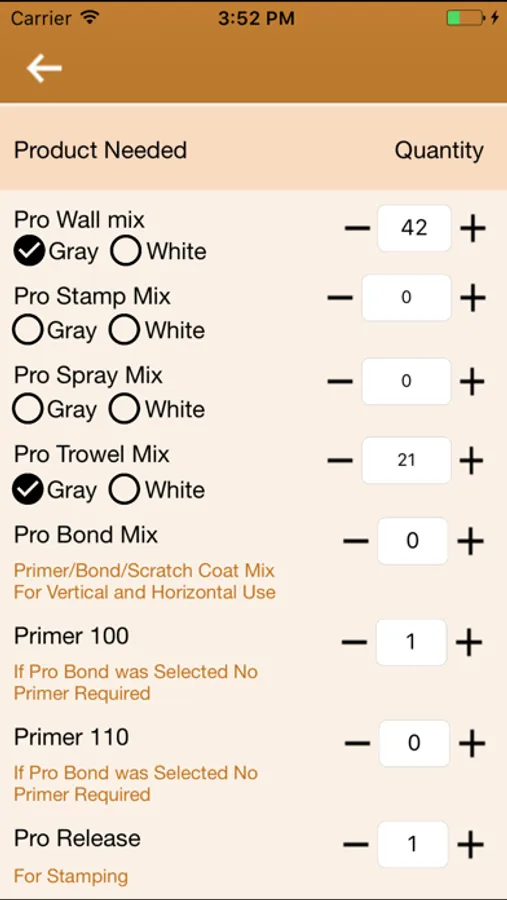 Job Estimator Pro™ is designed to easily and quickly create a concrete overlay job estimate, including labor and product quantities for that specific job. To start just open the app, choose the type of job, total square footage being overlaid, scratch coat (vertical) and overlay mixes you will be using, answer a few labor related questions and if the job is being bid by the square foot or as a flat fee. Once your data is in, hit enter…and the app will automatically: