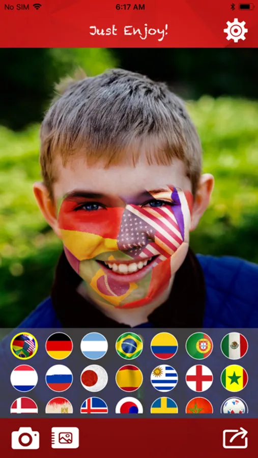 Soccer Faces lets you create natural face paintings on your photos, and share them on your favorite social networks. Multiple designs are available for all qualified teams. The app also contains designs that are team-independent, so you can have fun even if your team flags are not in the app.