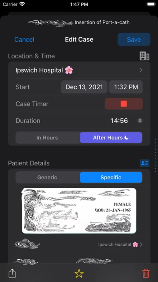 - Use generic Patients or for a more powerful database, add specific Patients to your Cases
