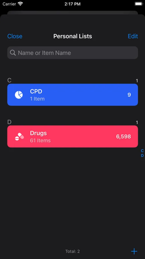 - Personal Lists are for you to create your own categories & items to add to Cases