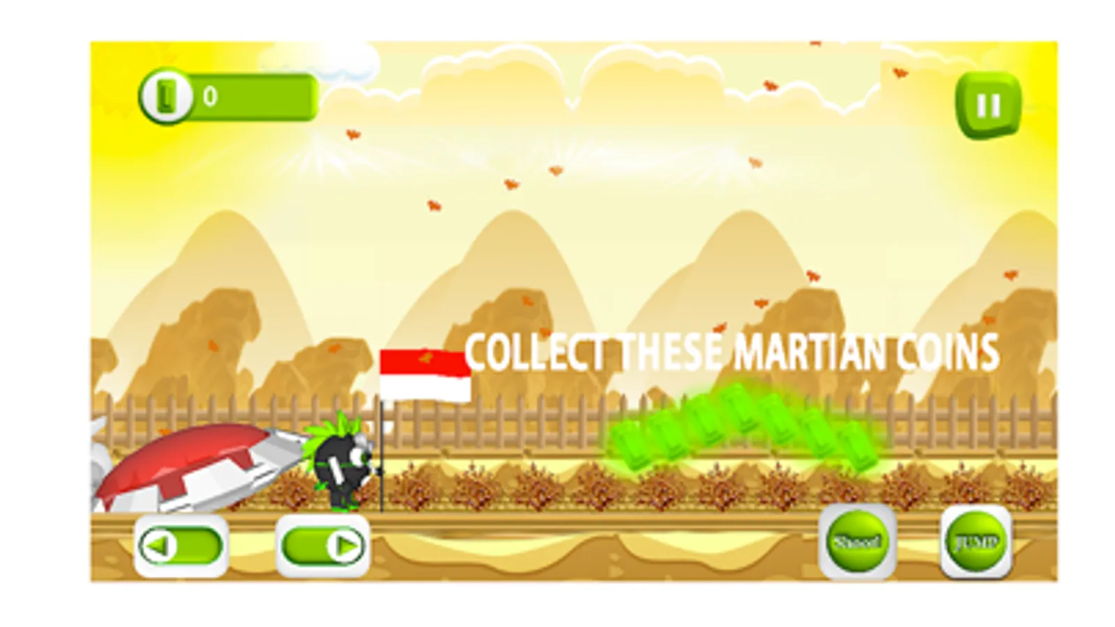 Spiky Green Martian needs to find a working UFO Vehicle to travel back to his planet. Therefore, he must to avoid and eliminate enemies so he can go to his planet safely.