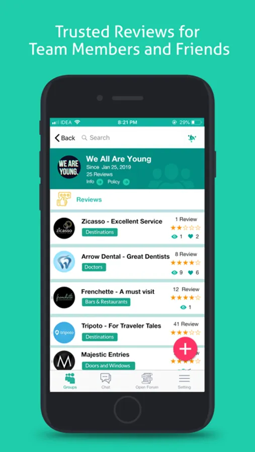 ZoomFlock is the easiest way to make Groups, have trusted Discussions, share Reviews with friends and solve problems! All Discussions and Reviews are threaded, tagged and searchable at anytime later on unlike other group apps.