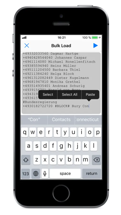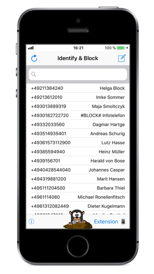 Incoming calls are identified by the phone number. Known names are displayed on the call and in the recent calls log. Alternatively, call blocking is possible. "Bury Contacts" can be searched and dialed. All data is stored in a single large text field that is only stored on your iPhone. Use copy&paste to import/export and backup/restore.