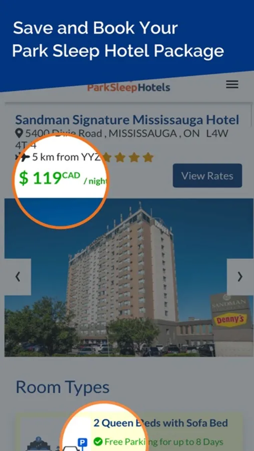 This is the official ParkSleepHotels.com app. You’re now able to save on park stay fly package deals with this app. Save up to 30% on your vacation when booking parking + hotel together* with free shuttle service to and from the airport.