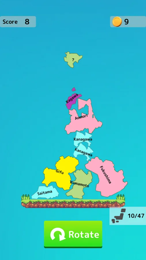 JAPAN MAP STACK is a physics puzzle game! Stack up map pieces as many as possible.