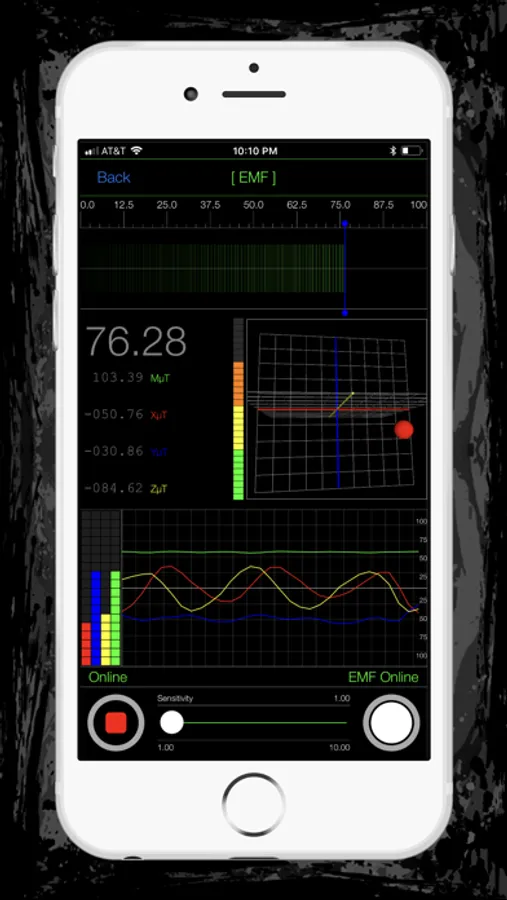 The EMF instrument utilizes your device’s magnetometer to measure the ambient electromagnetic fields across the electromagnetic spectrum.