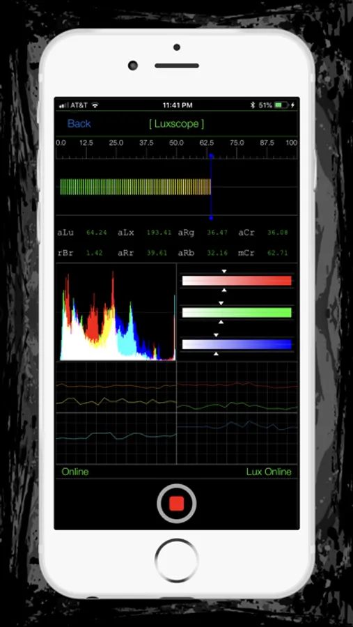 The Luxscope instrument utilizes your device's light sensor array to measure illuminance and spectrographic color distribution.
