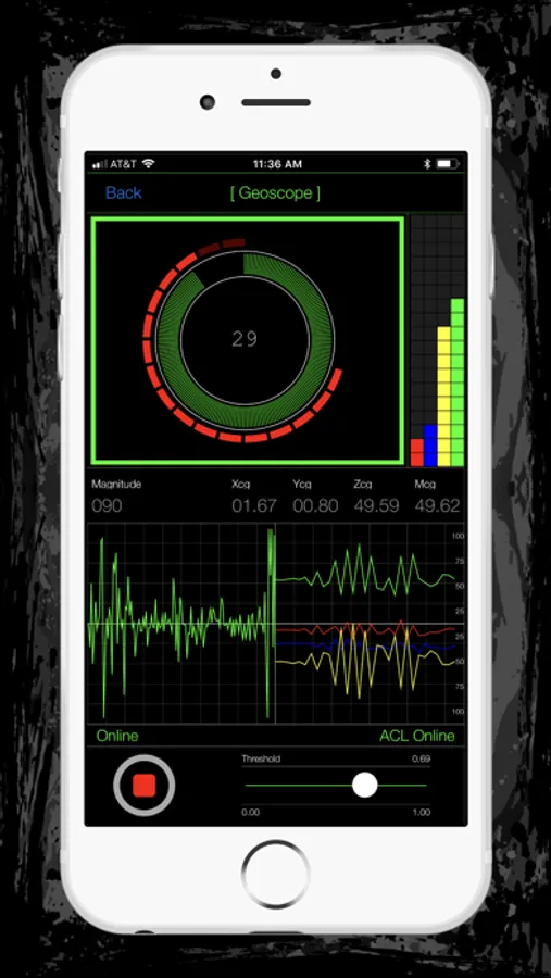 The Geoscope instrument utilizes your device’s gyroscope and accelerometer to detect extremely subtle movements and vibrations.