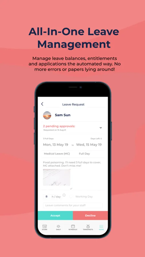- Get visibility of the team’s movements who is in, late or absent) via the app - no need to be physically at the store