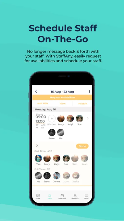 - Easily request part timer’ shift availabilities for the coming week in a click of a button