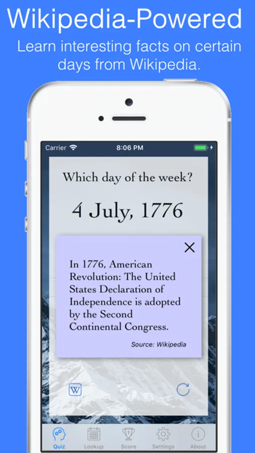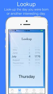 Quickly determine what day your were born, or when a contract was signed. Impress your friends & colleagues with your newfound skill.