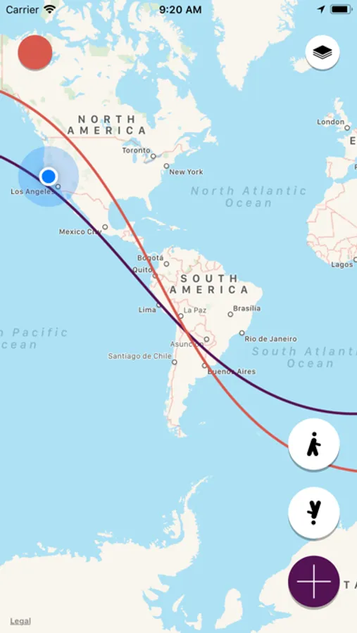 Want to know the shortest route to New York, Paris or Hong Kong? Simple - zoom out the map and point your phone at the city. Beautiful great circles are overlaid on to the map showing you the direction to head in.