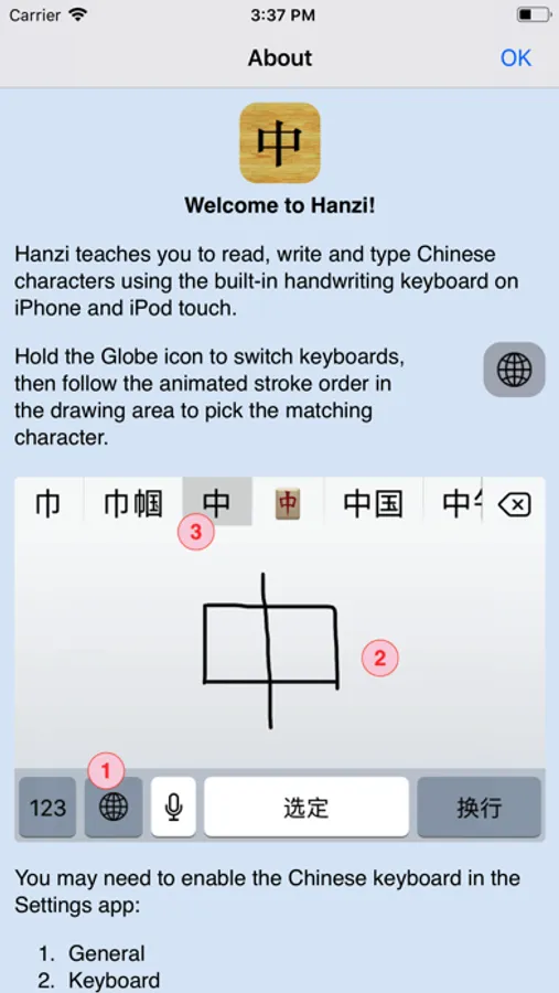 Learn Chinese writing from the very beginning, starting with simple but useful characters that later combine to make more complex characters. Just follow the animated stroke order! I wrote this app for my kids to learn how to read, write and type text messages to their grandparents in China.