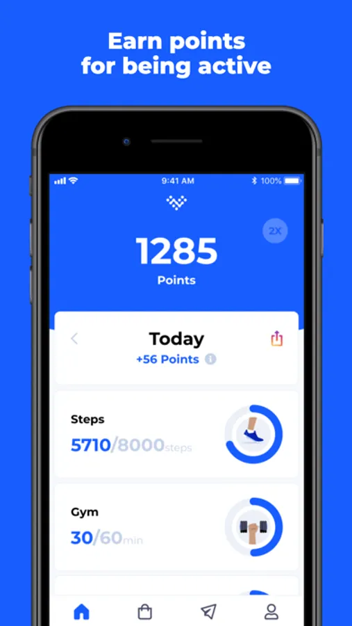 1) Visit your favorite gym, studio, or rec center, and Plyo automatically checks you in based on your location. Every minute at the gym earns you points.